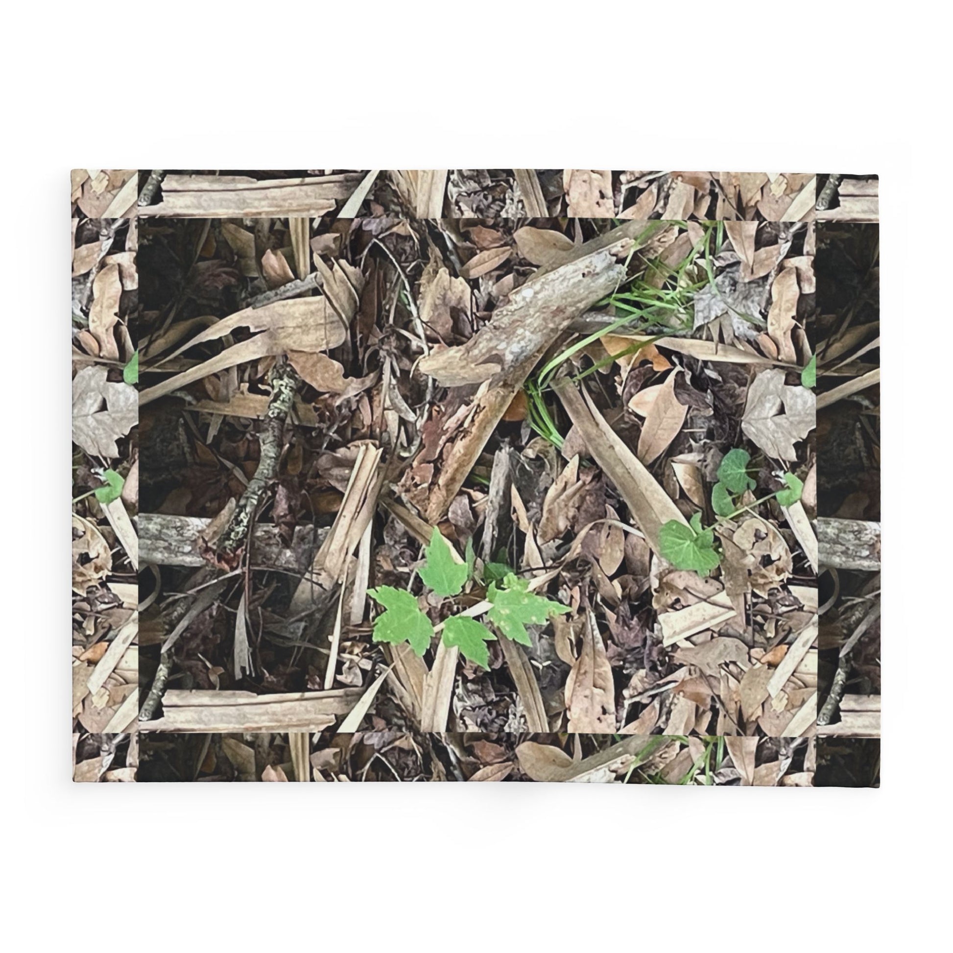 This plush fleece blanket wraps you in the quiet of the forest floor. The detailed woodland design — scattered bark, dry leaves, and bright green sprouts — feels like a small, secret patch of trail tucked into your lap. It’s warm without weight, soft against the skin, and bright enough to hold its pattern after many washes. Use it on chilly mornings with a mug of coffee, draped over a favorite armchair, or folded at the foot of a bed to bring a calm, outdoorsy note to the room. The scale of the print reads like a textured tapestry up close and settles into a natural, grounding pattern from a distance. For anyone who loves hikes, late-season walks, or the hush between storms, this blanket brings that mood inside.